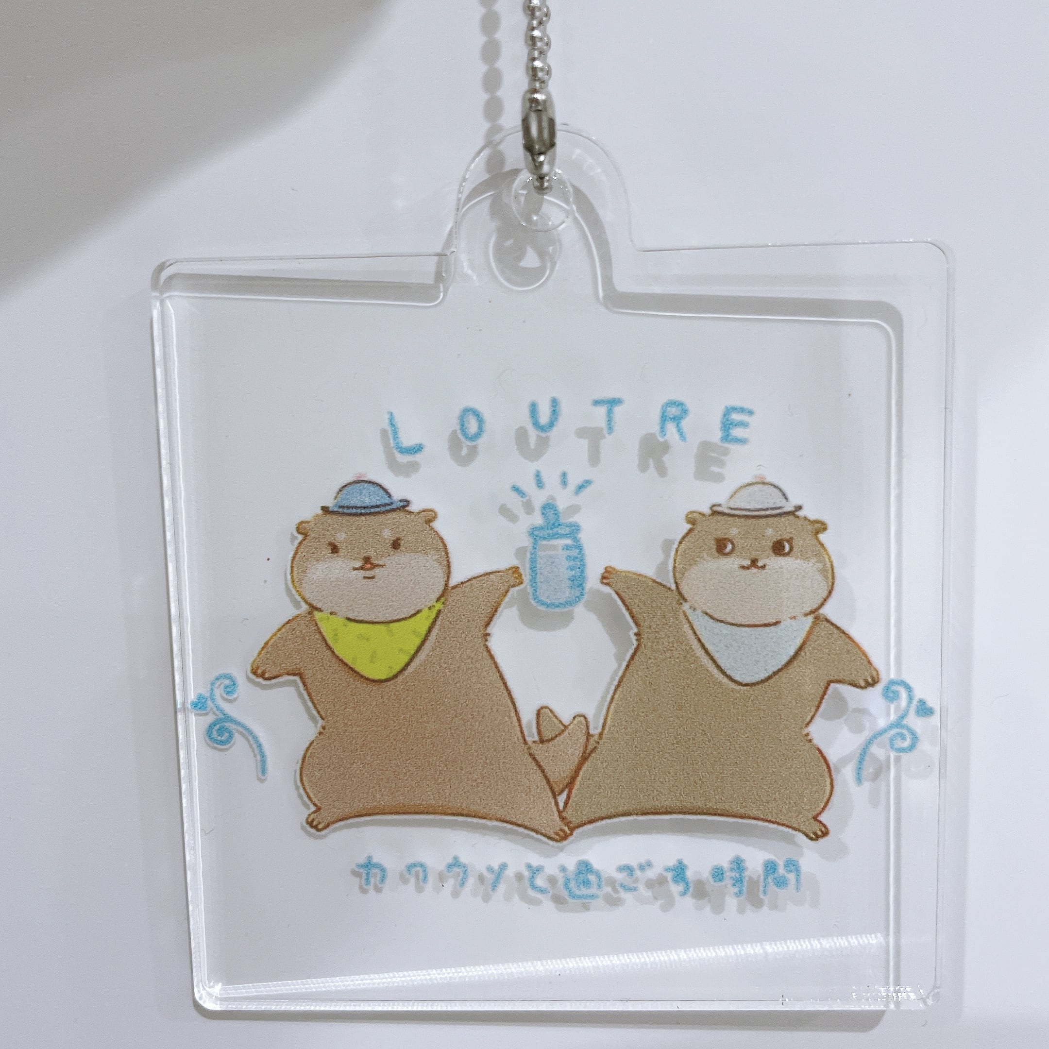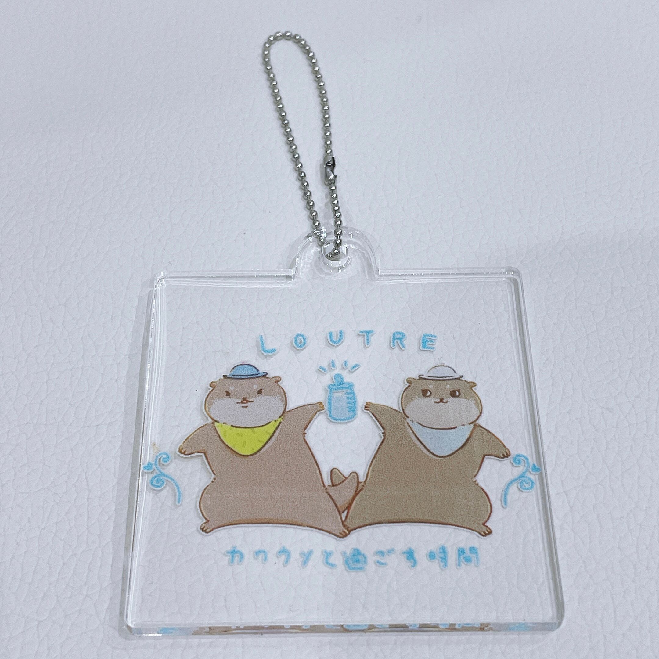ベビーカワウソわさびとなみだのイラストのアクリルキーホルダー。